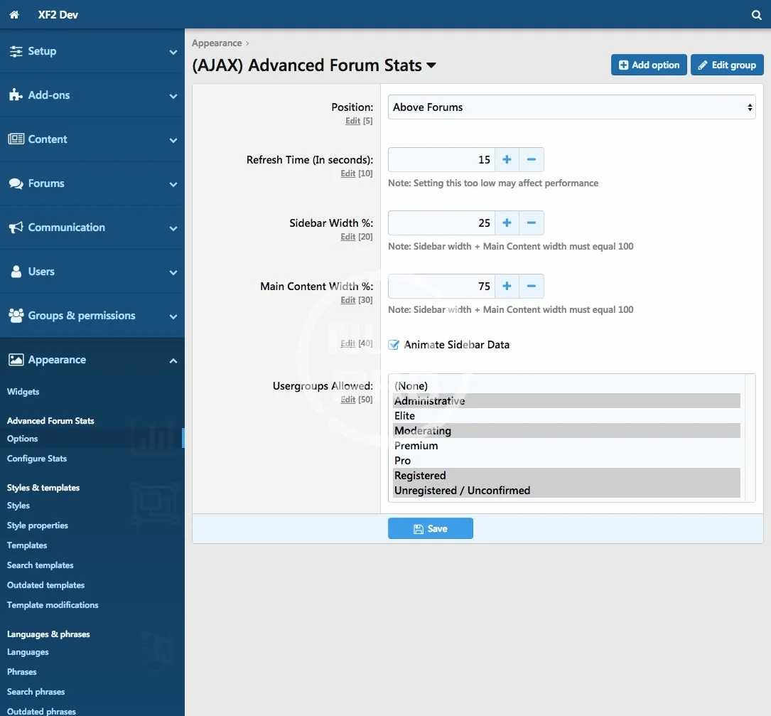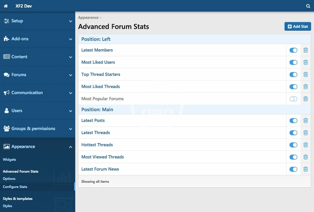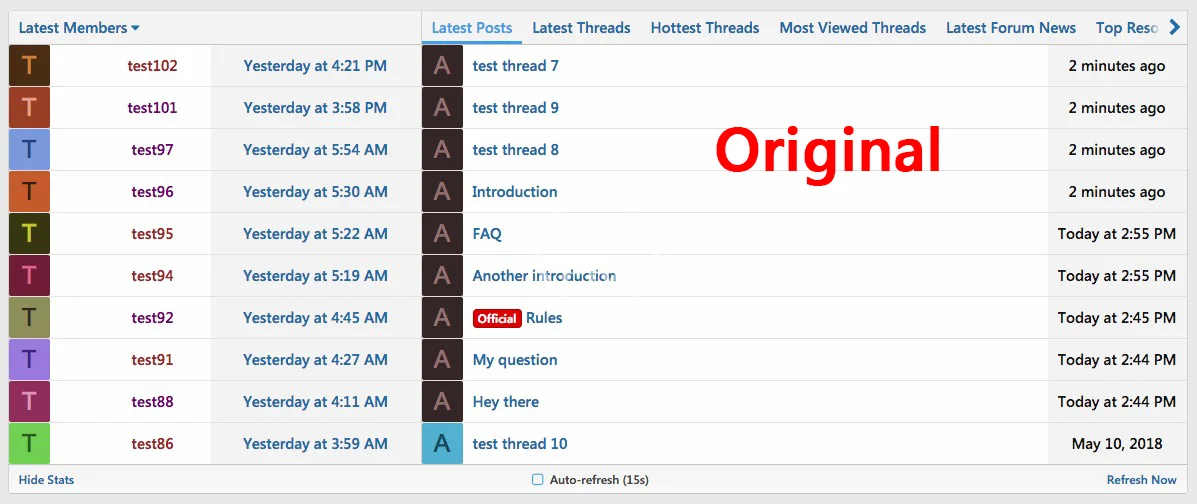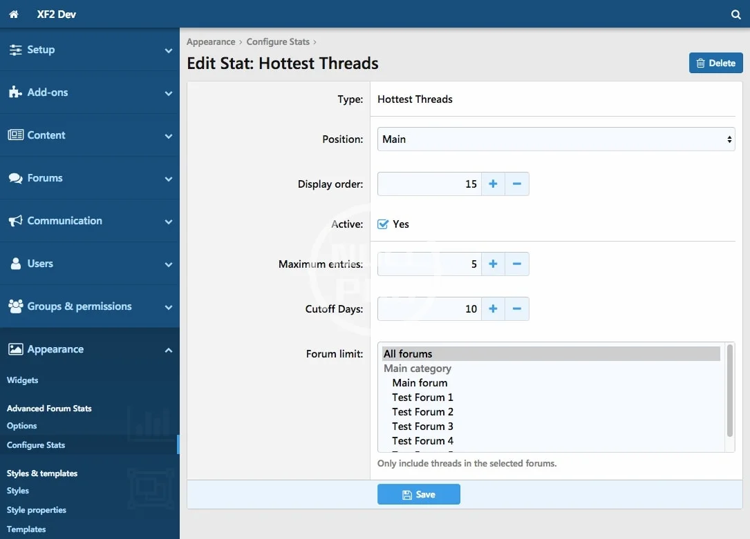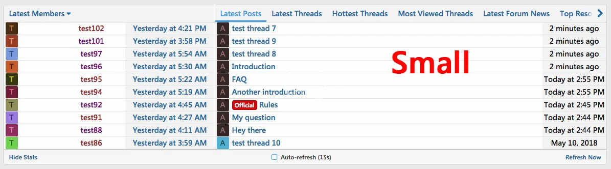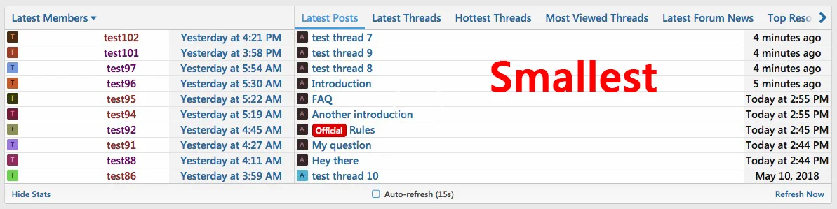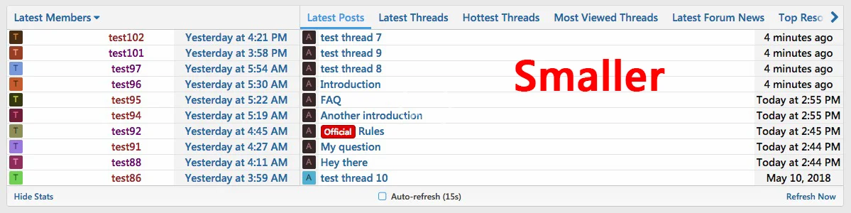 - Only show results from X forums, each stat has the option to specify which forum(s) to include