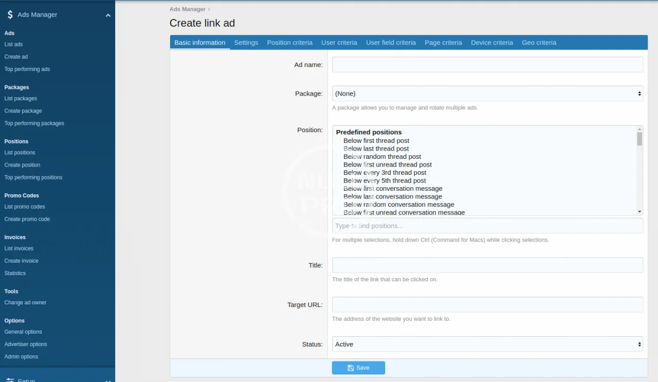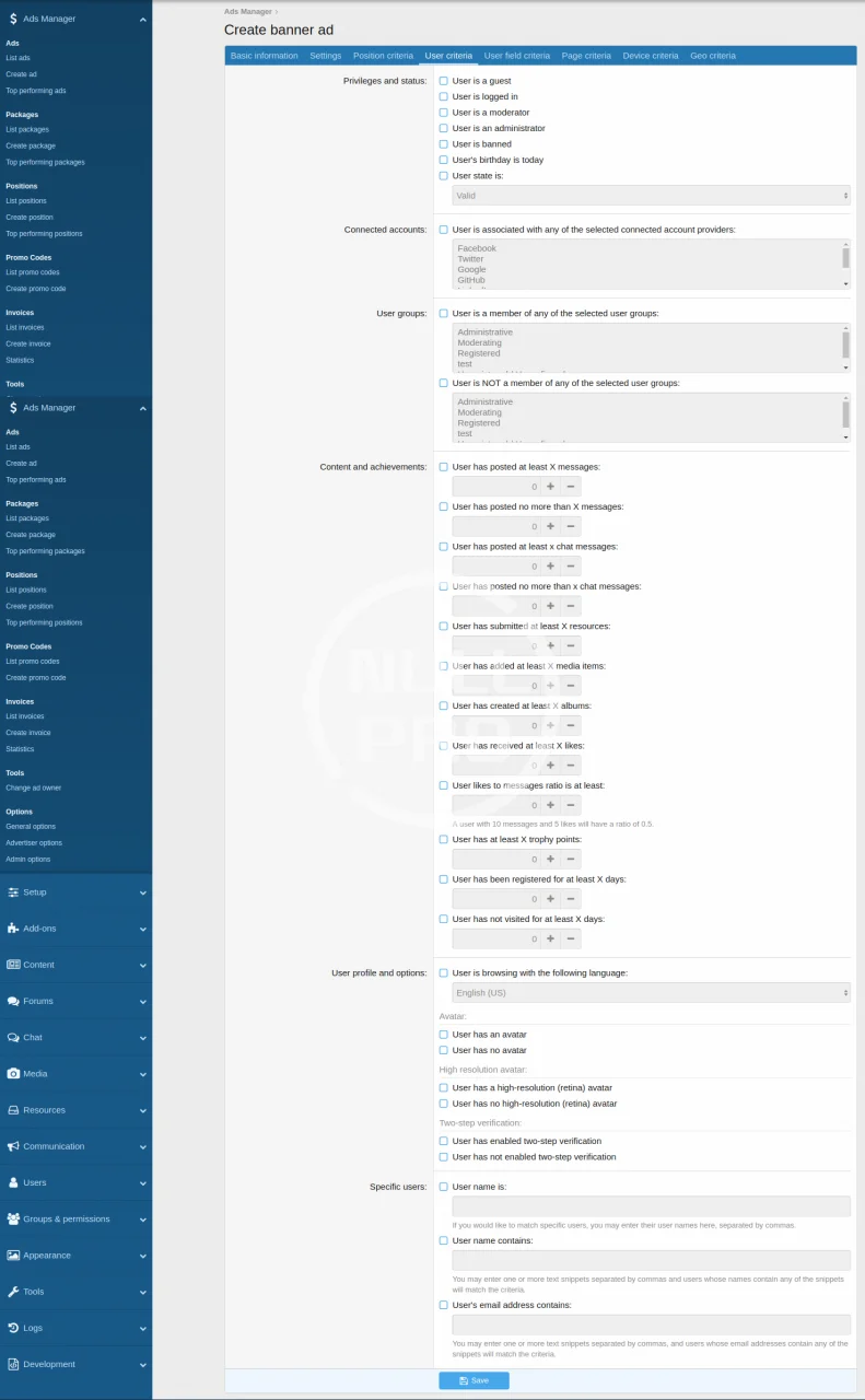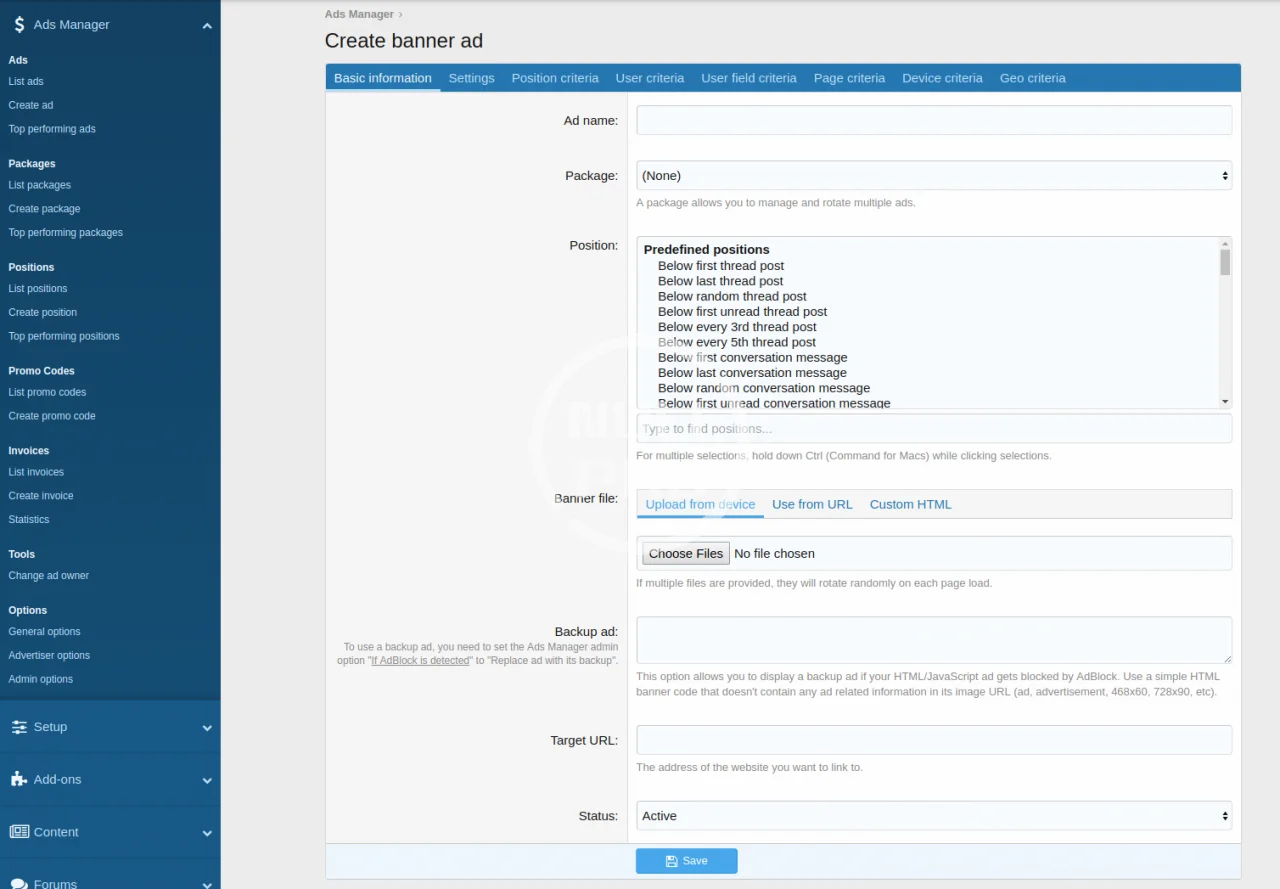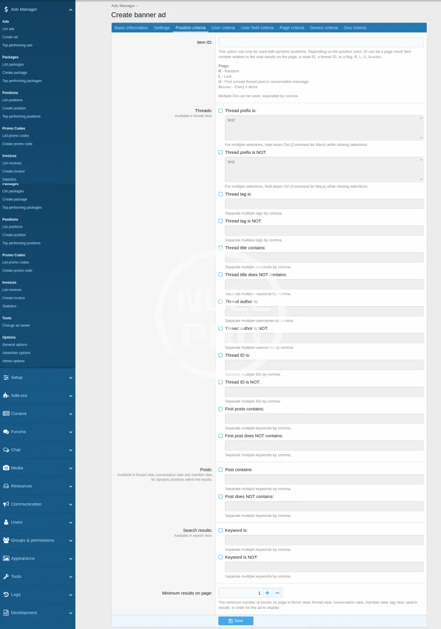 - Use Position Criteria to display ads based on thread title, author, tag, prefix and more
