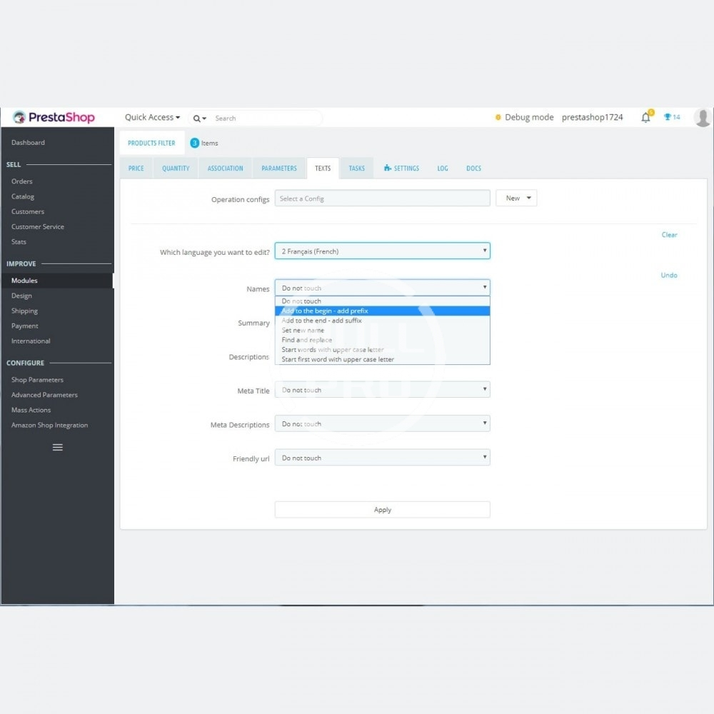 Bulk / mass edit products prices, quantities, associations, multilang texts, features, tags and +50 parameters.
