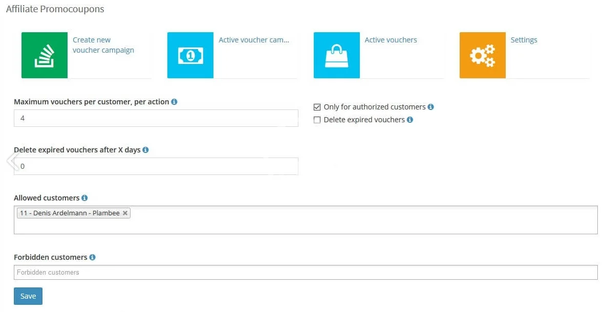Of course, your partners can not simply create vouchers at random, as an administrator you can keep control of what the partner can create coupons.