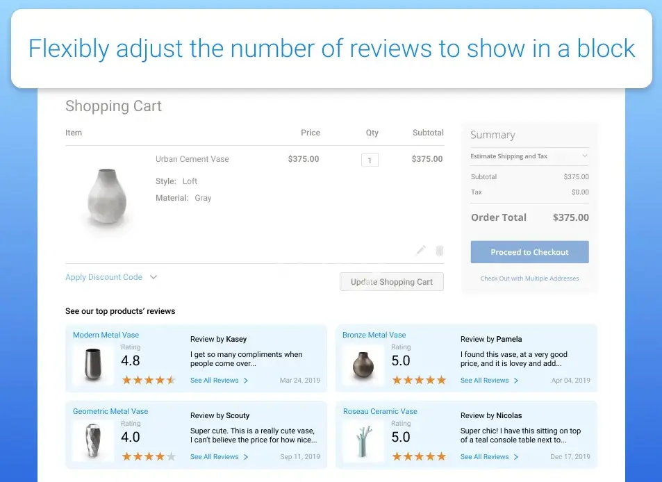 - Display customers’ reviews at any place on any page