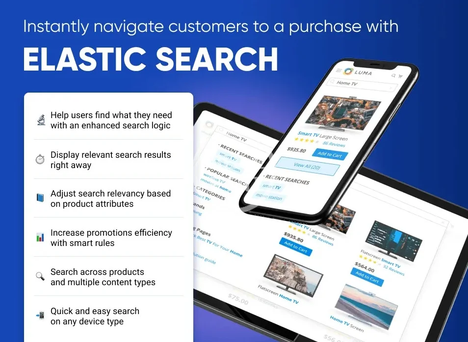 Convert searches into sales with Elastic Search for Magento 2. Instantly show the most relevant search results to guide customers to what they’re looking for quicker.
