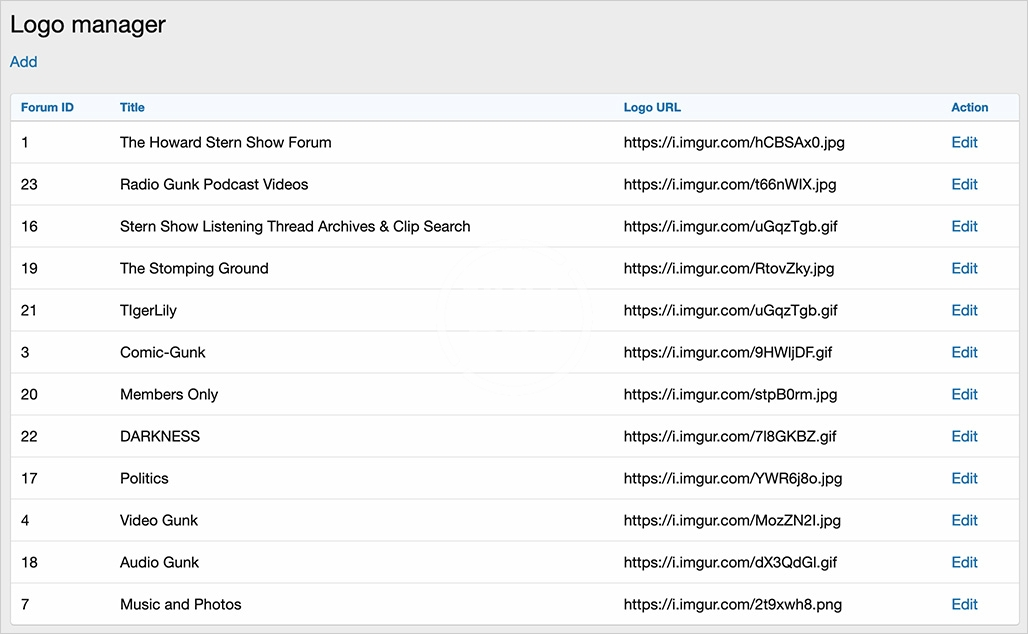 For example, you have the default logo which is shown in the forum list, but when a user clicks into one of your forums, they will see a different logo, one that pertains to that forum. You can specify a different logo for each forum.