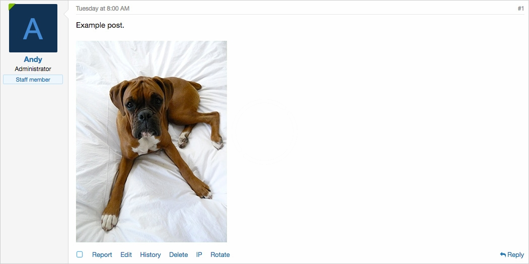 Attached images sometime are uploaded in the incorrect orientation, until now this was difficult to fix. Now you can simply click the Rotate link below the post and quickly rotate any attachments to the correct orientation.