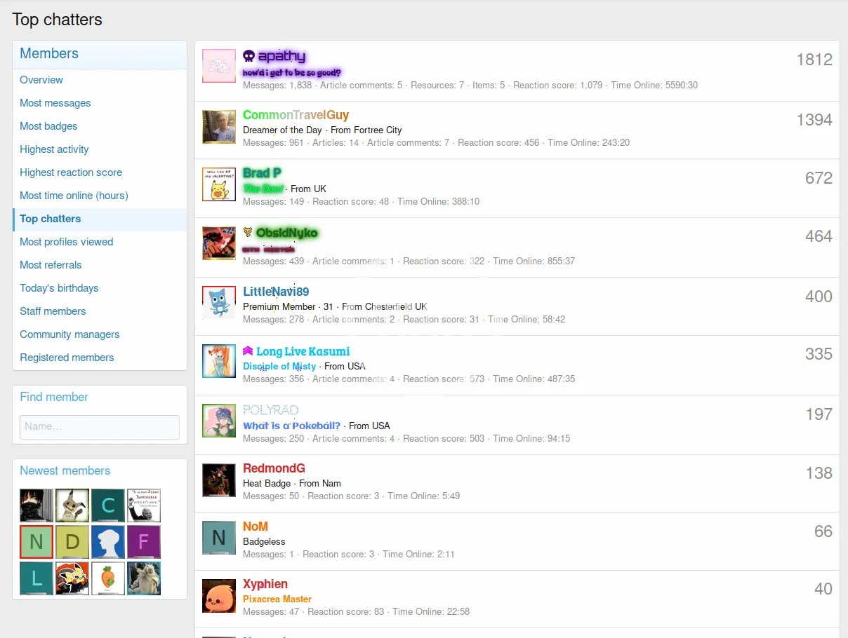 - This addon creates a "Top chatters" member stat for the "Notable members" page