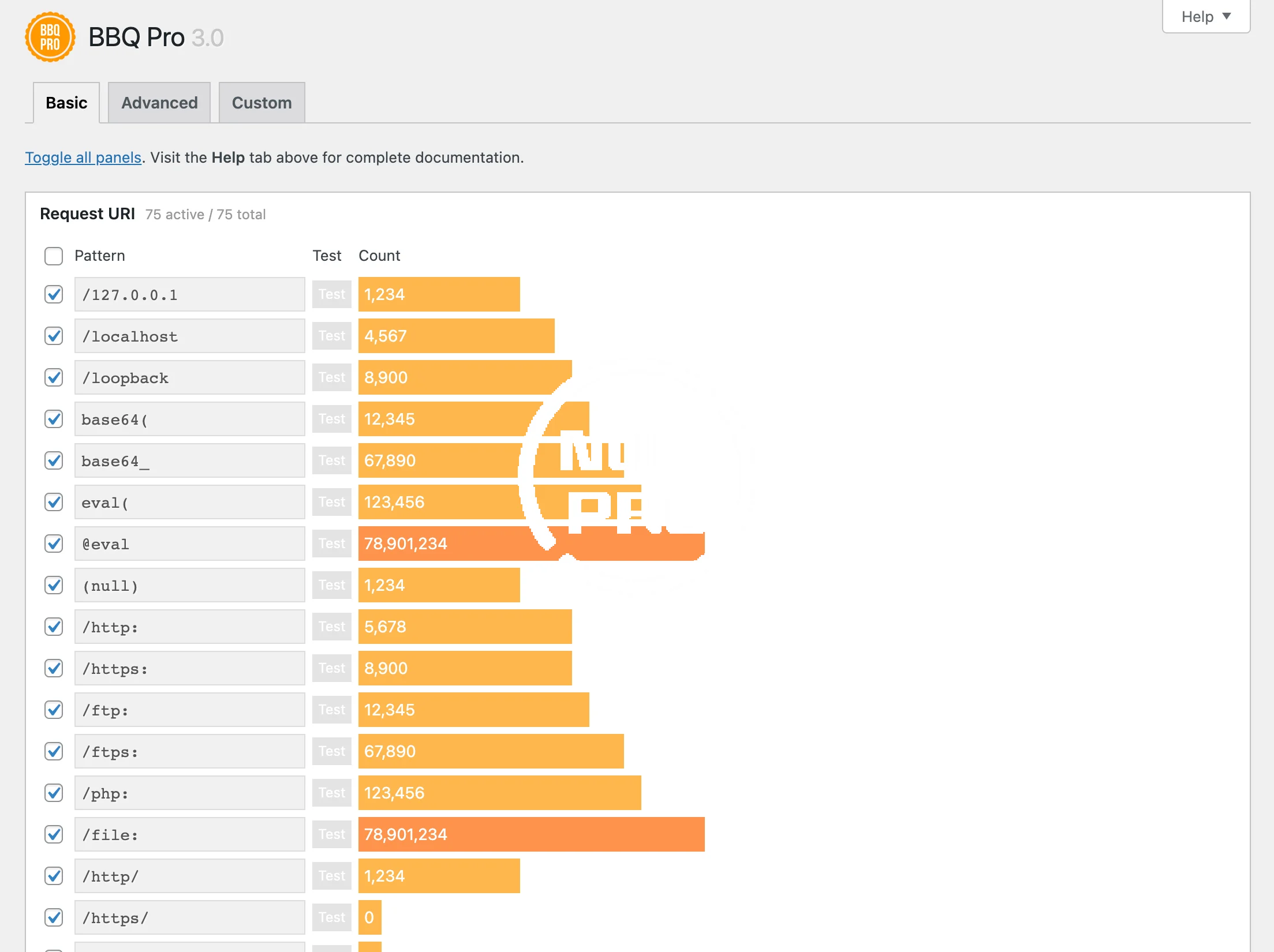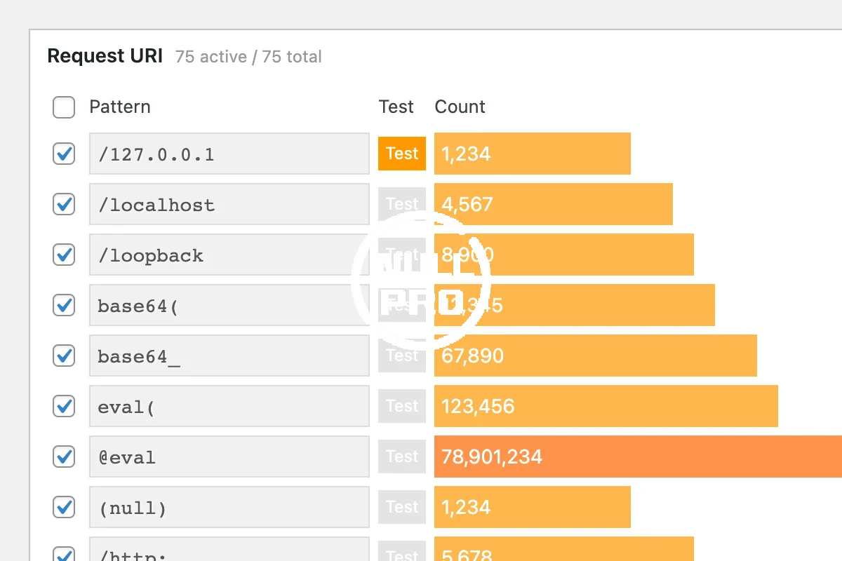 BBQ Pro runs silently in the background, checking all incoming traffic and blocking any URI requests that contain nasty stuff like base64_, eval(, .exec(, and other malicious nonsense.