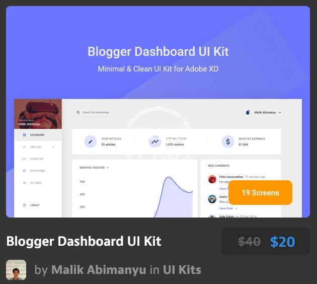 Premium Blogger Dashboard UI Kit for Adobe XD