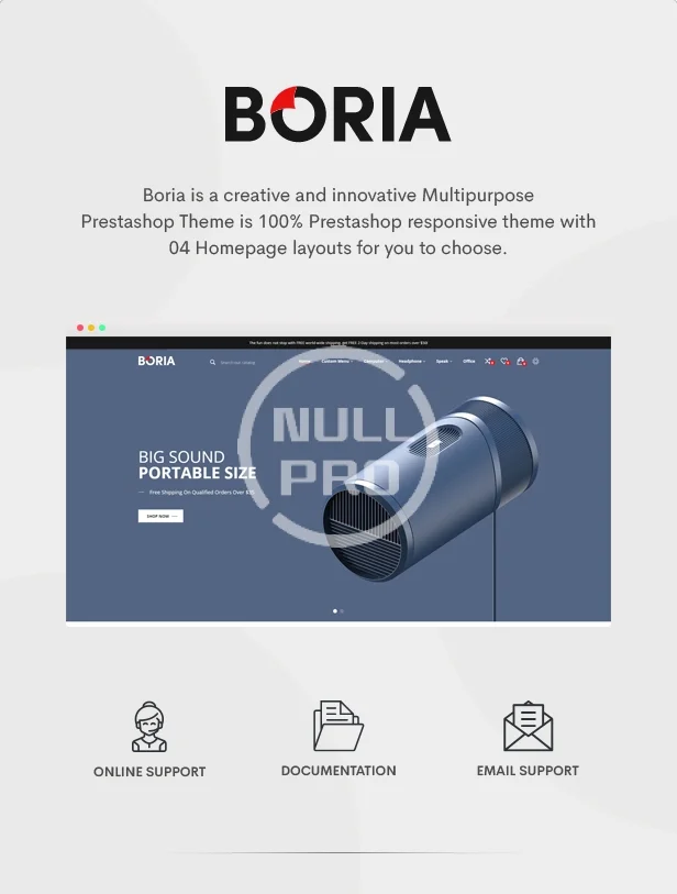 - Boria Multipurpose Prestashop theme has the latest style and impresses with eye-catching layout