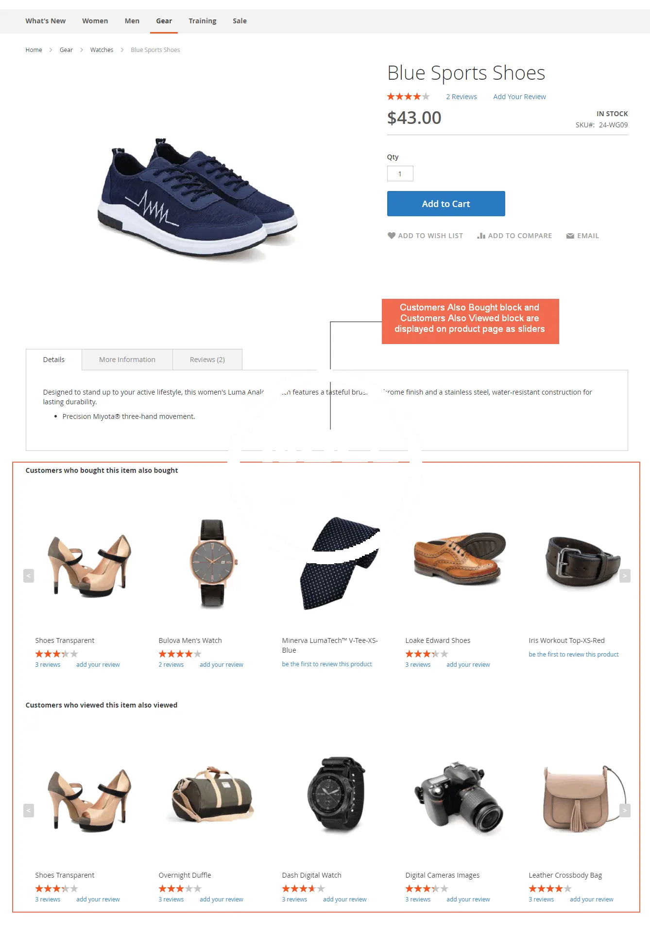 Customers Also Bought/Also Viewed is an additional feature that recommends to customers the most relevant suggested products when they view the product page or cart page.
