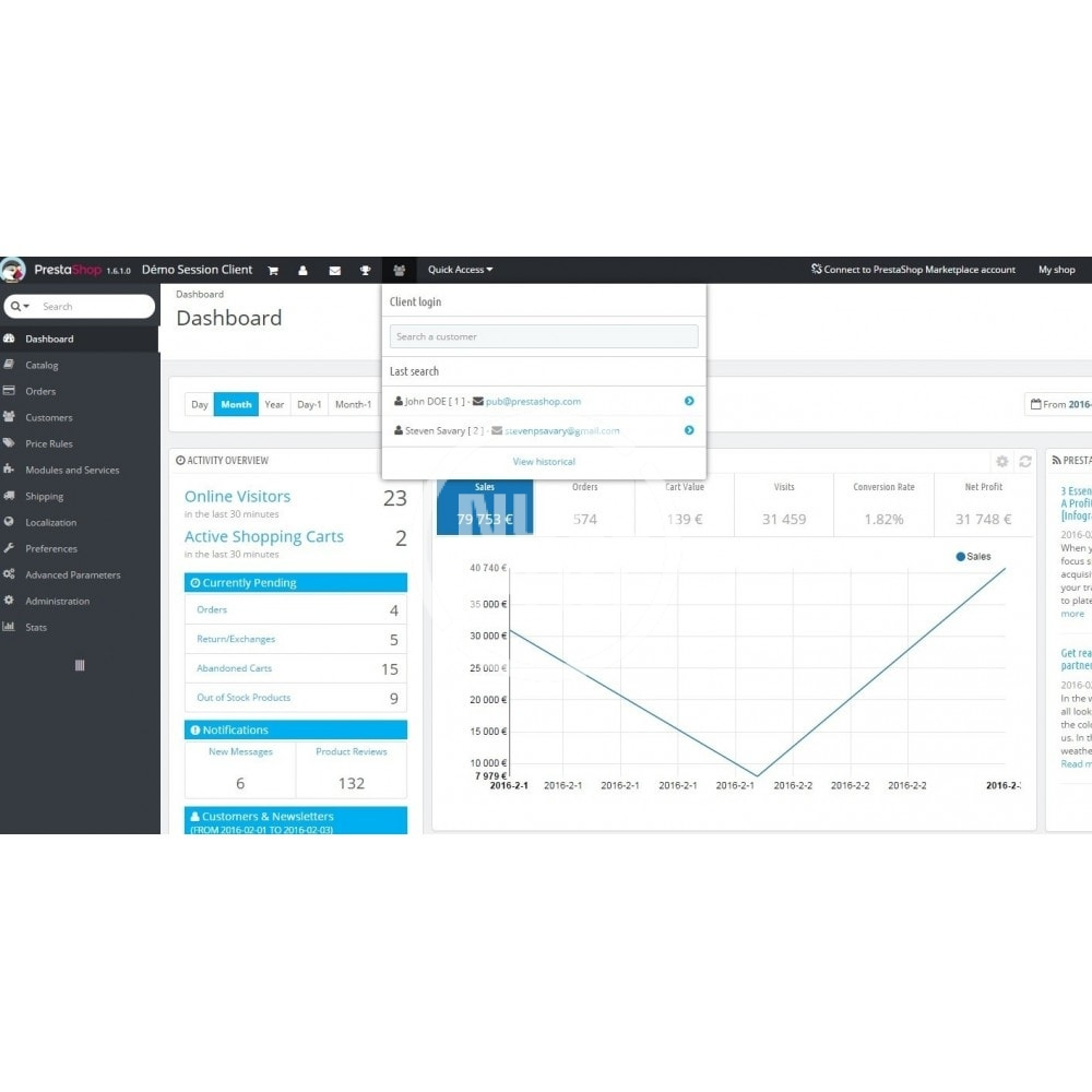 Client Login allows you to log into the customer area of your users without having to ask for their IDs. So you can help your customers to order or view the problems related to their account.