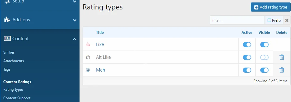 - A Rating type can be usable or visible;