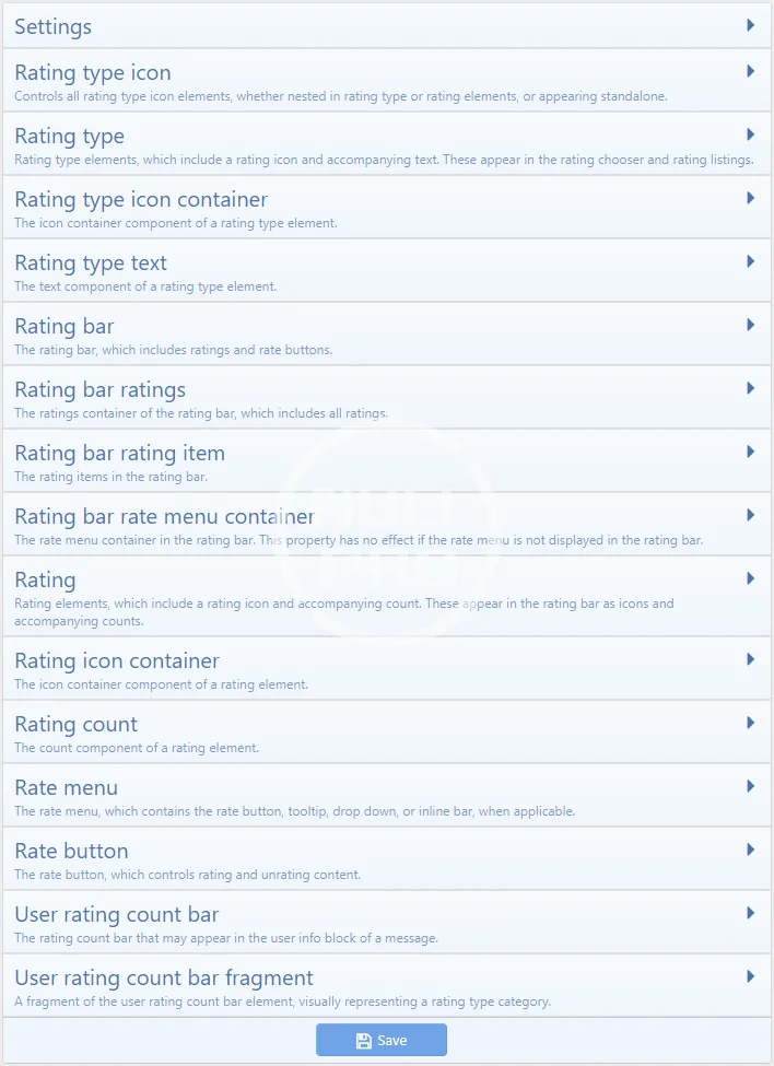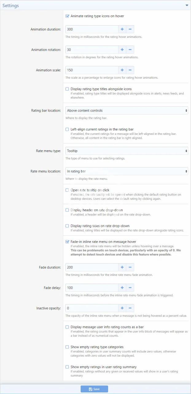 - Whitelist/blacklist ratings by user group, lock to starting poster, and limit to forums (for threads)