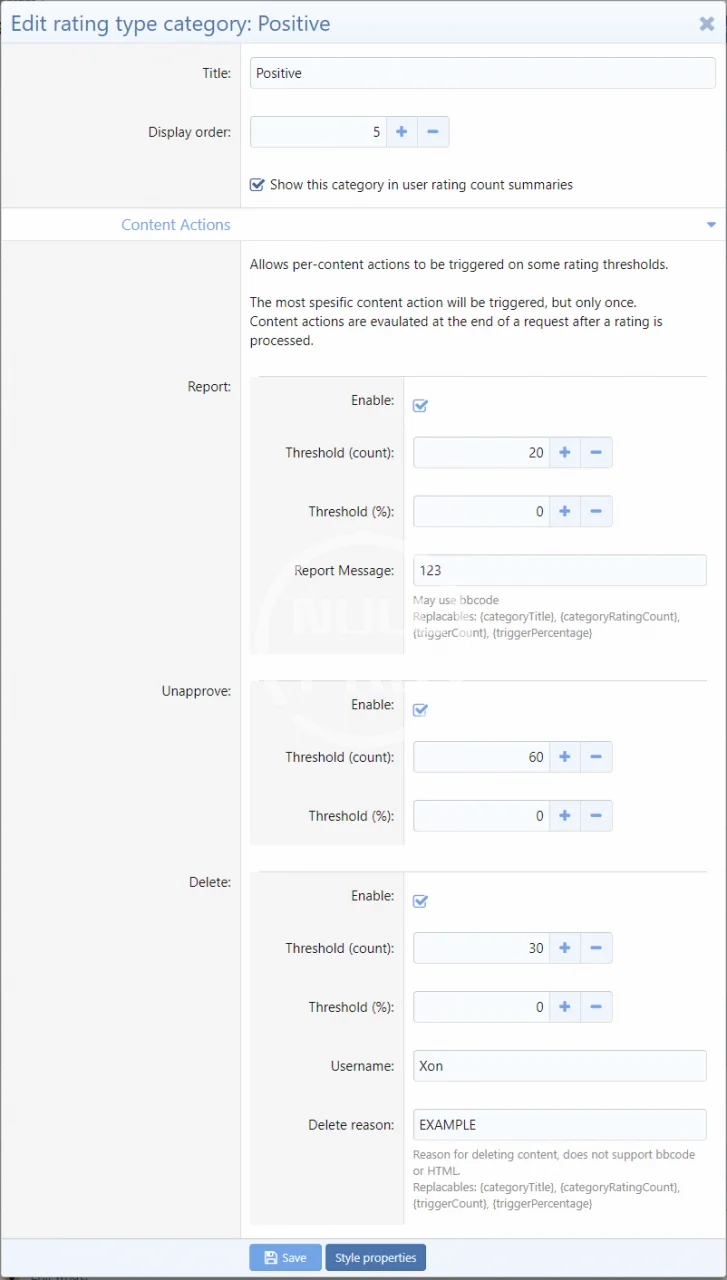 - Rating Categories automatic actions when a category hits some threshold ;