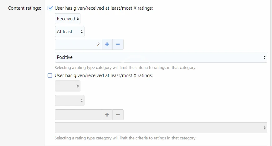 - Allow arbitrary number of rating type/rating type category user criteria