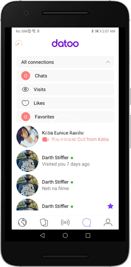 - Connections System: The type of connected: Conversation, Likes, Visits, favorites and Matches in one place