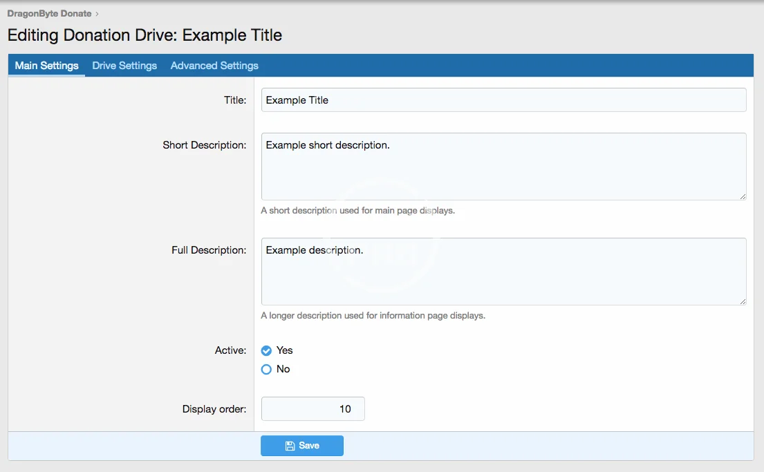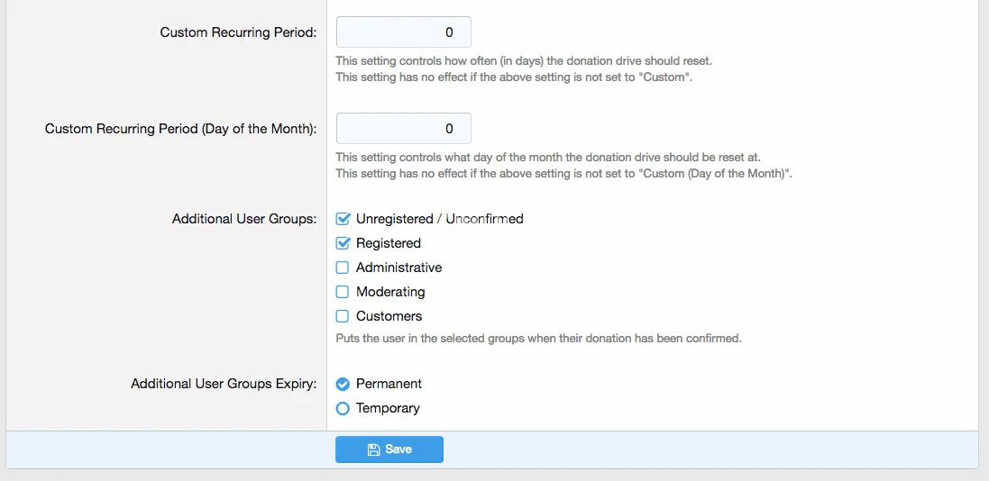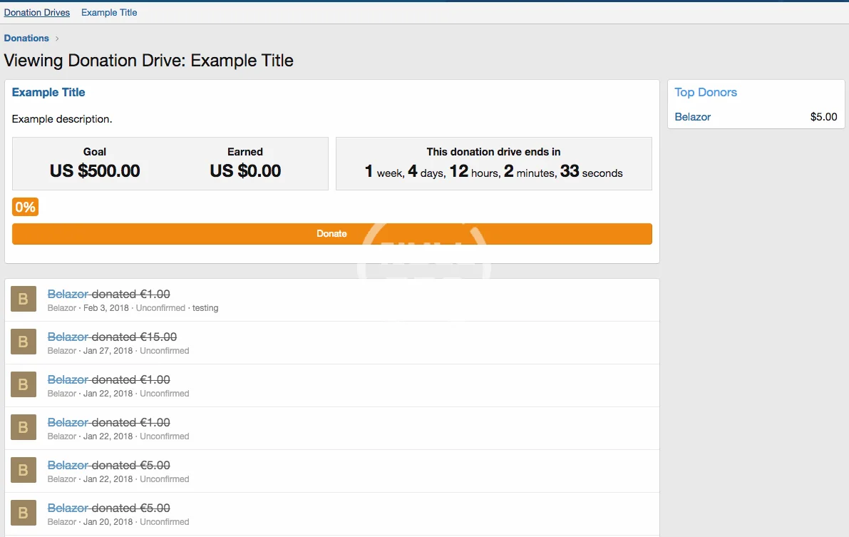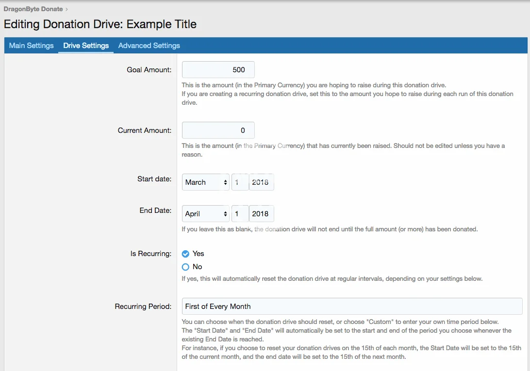 Advanced Donation Drives: Donation Drives can be customised in a wide number of ways, including advanced recurring options, whether to display it on the main page and/or the sidebar, as well as a short and a full description (to be displayed on the main Donation Drive info page).