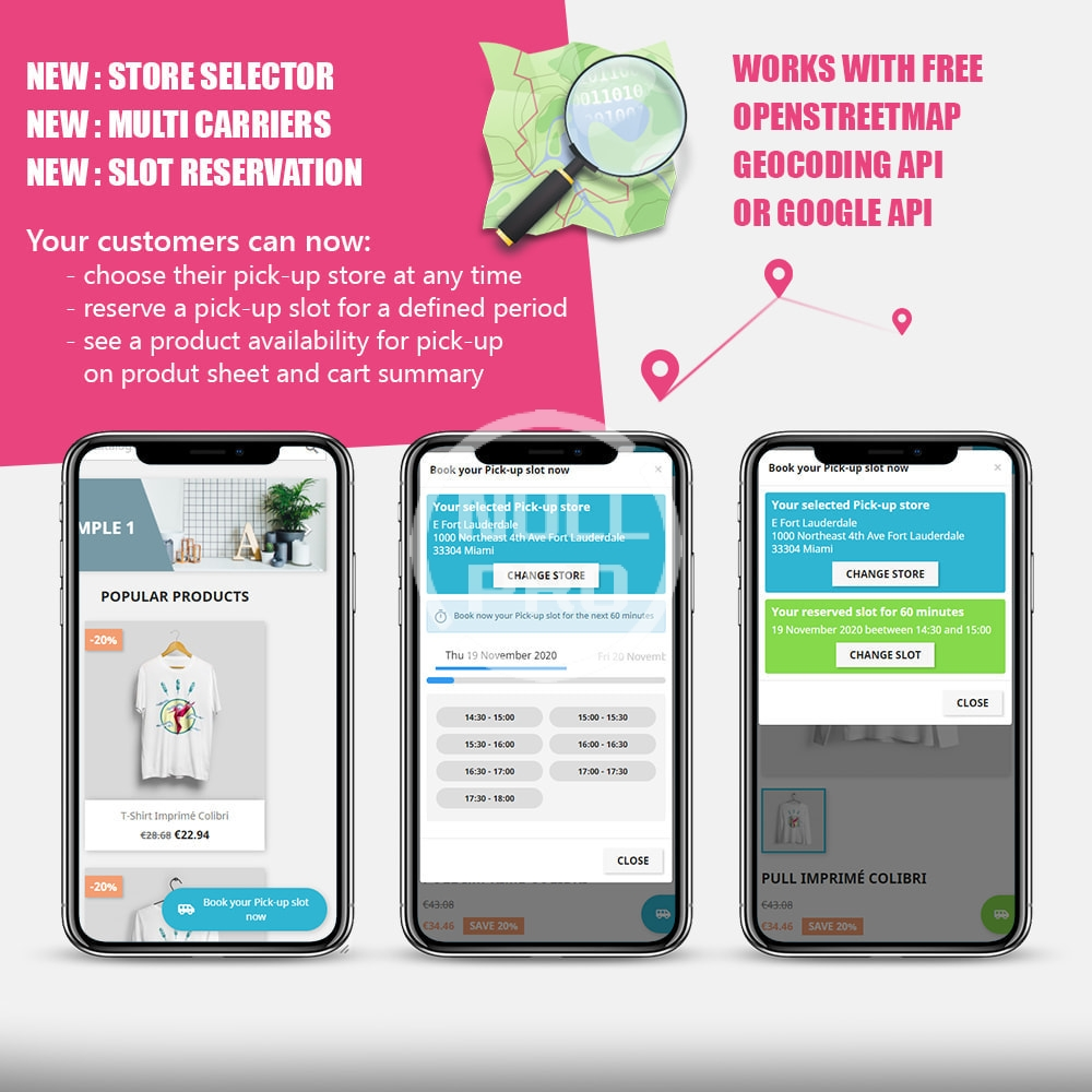 The Drive - Click & Collect module for Prestashop allows you to manage and optimize your delivery schedule according to your different stores, opening days & hours, on a simple and optimized interface built for smartphones