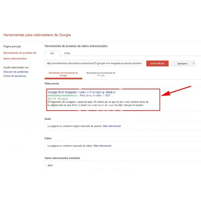 This module for PrestaShop adds the necessary code in your store to display all important information of your products as name, description, price, stock, etc in a Google search.