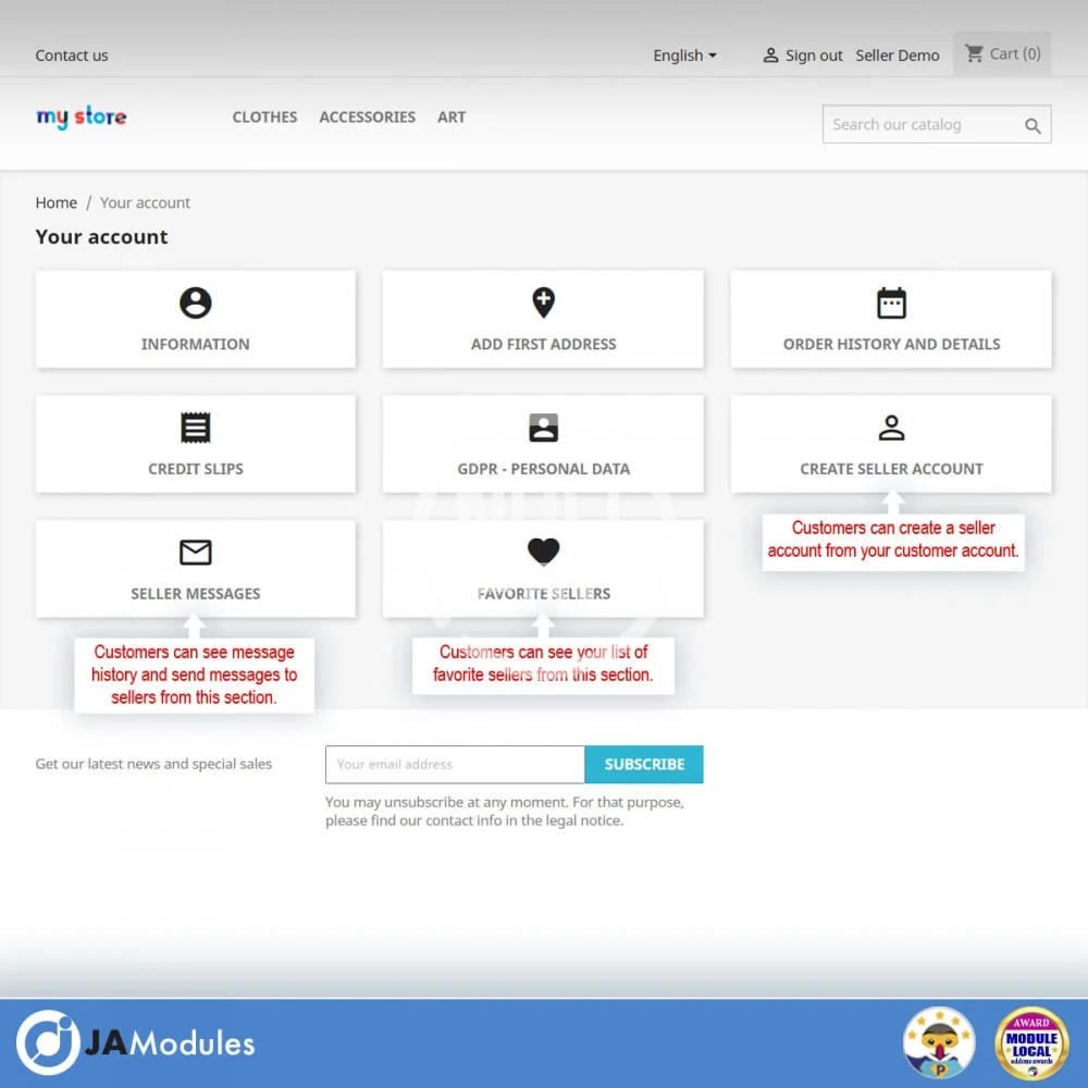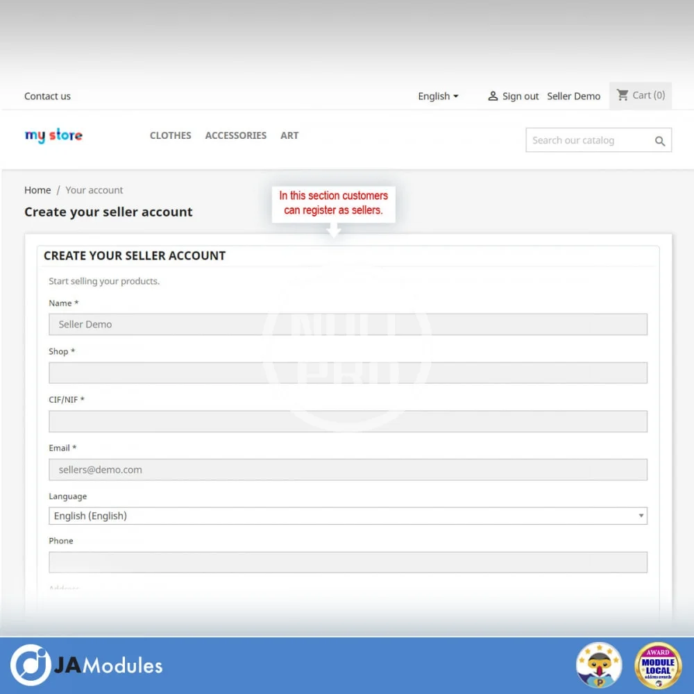 - Create your own marketplace allowing your customers to register as sellers to sell their products in