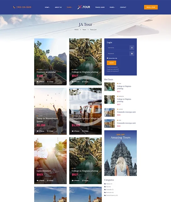 The JA Tour template is designed tailored to what a travel and tour booking business will need. As always, the template comes packed with layout builder, mega menu, builder, custom configuration and RTL language layout, etc.