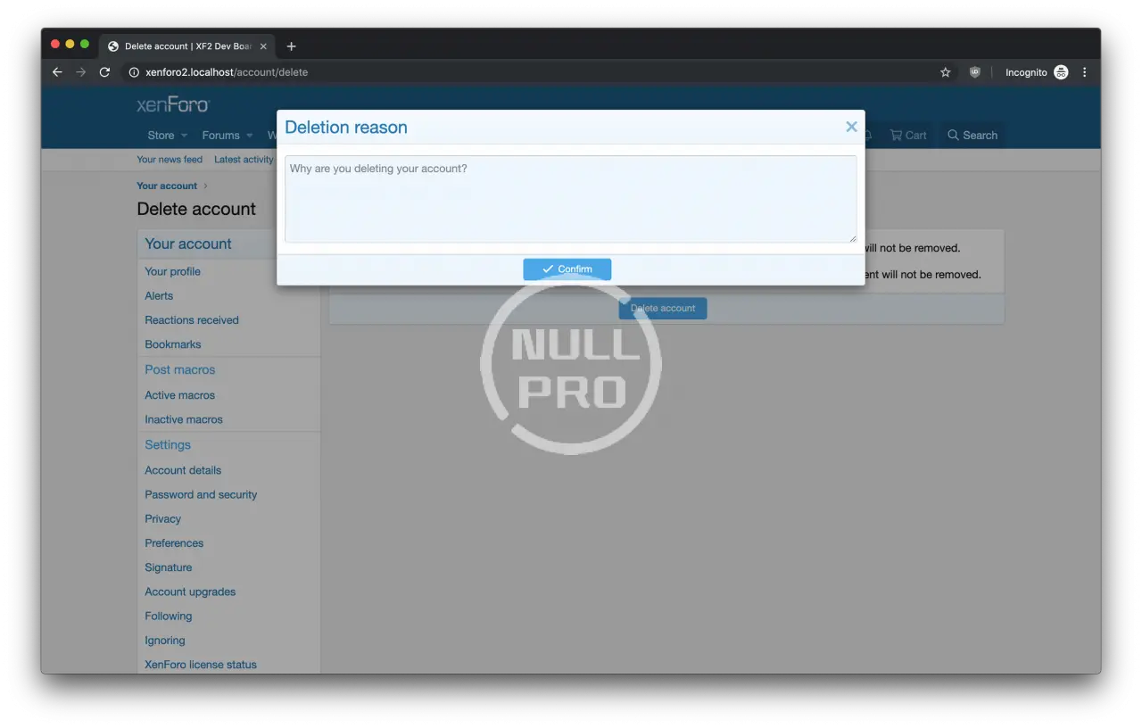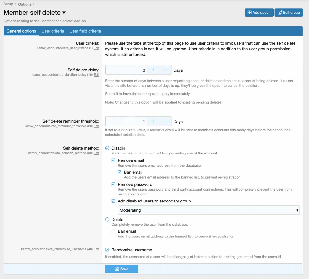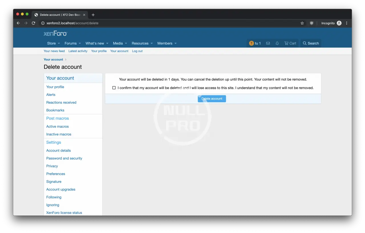This add-on gives your members the ability to delete their own accounts.