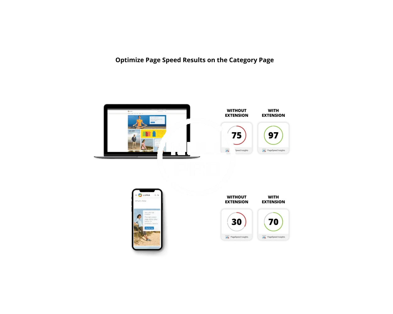 The Magento 2 Speed Optimization Extension prepares your site for Google mobile first indexing and helps get you back on the front page!