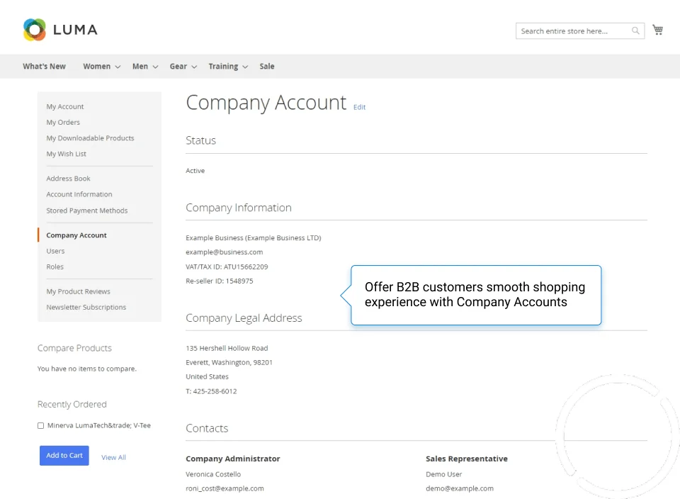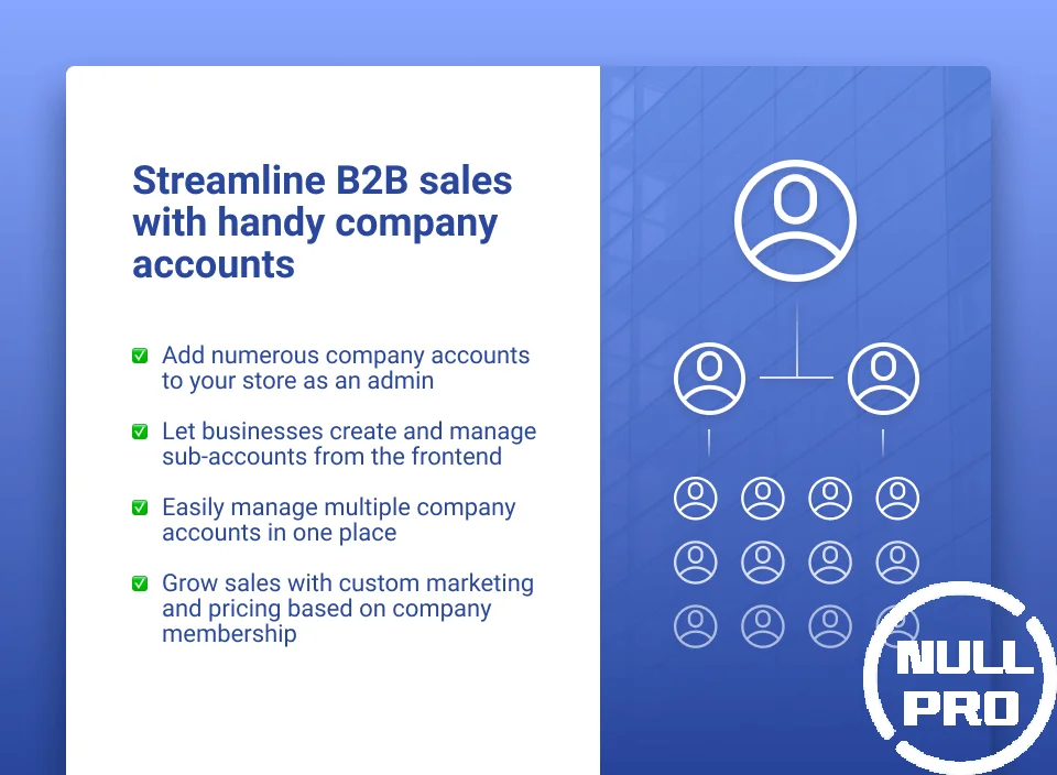 Simplify purchases for your customers by introducing B2B Company Accounts to Magento 2 store. Let companies register multiple user accounts, allow special permissions to enhance shopping and get more orders.