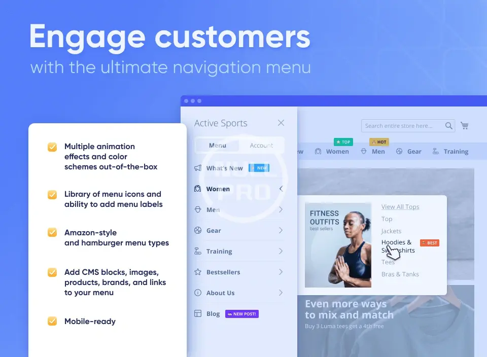- Mega Menu Pro extension to create an attractive and dynamic navigation menu without any technical