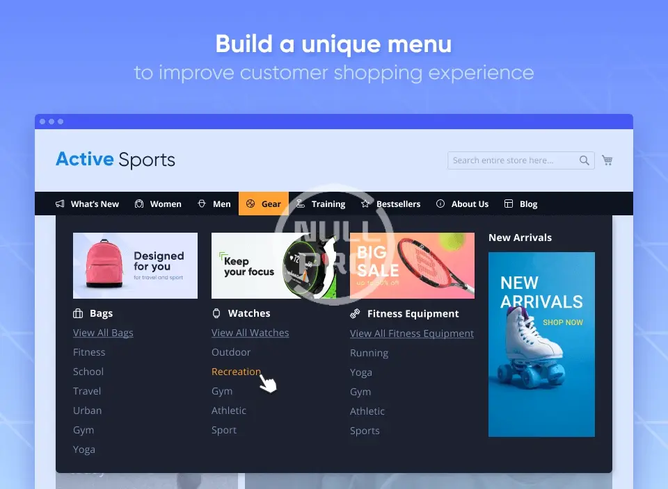 Improve customer shopping experience by providing fast and flexible access across your website pages. Empower your store with Magento 2 Mega Menu Pro extension to create an attractive and dynamic navigation menu without any technical skills.