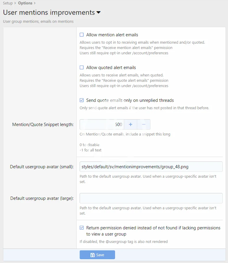 - As menções de usuários podem ser desativadas por fórum por grupo de usuários.