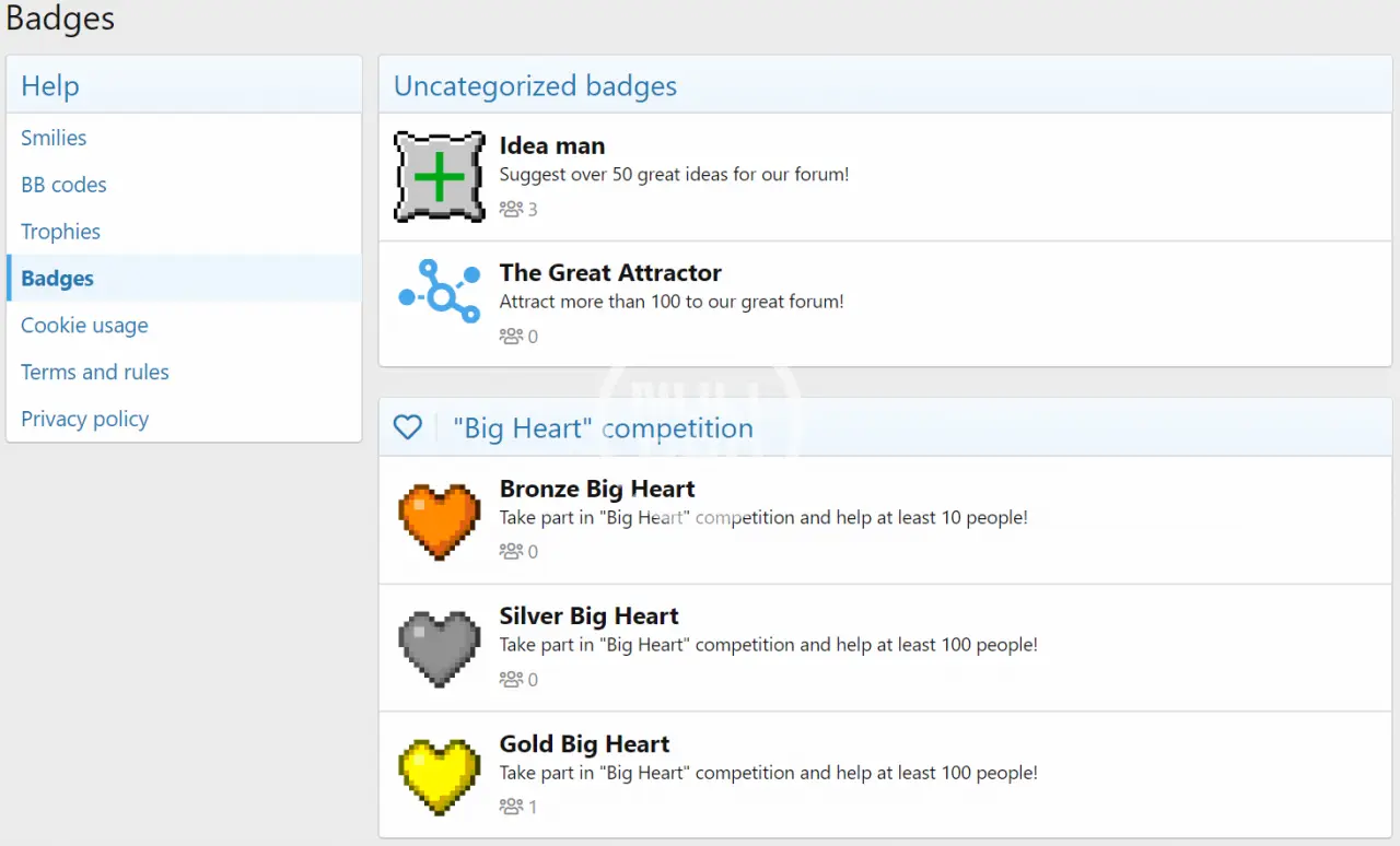 - Display badges on users profiles, and profile cards.