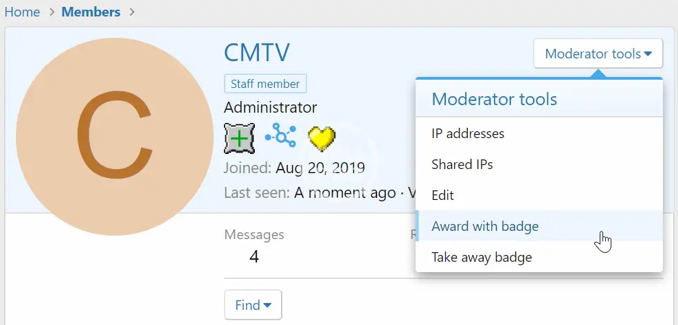 - Manually award users badges.