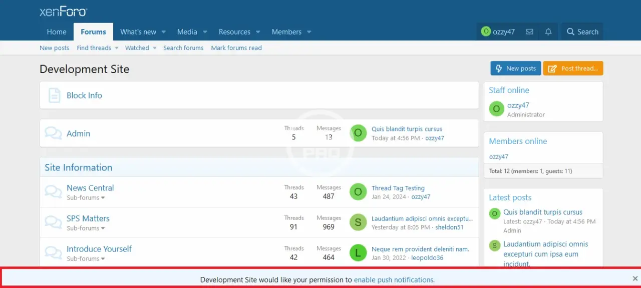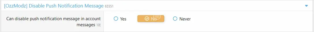 This addon will allow your users with the proper permission to disable the annoying "push notification" message. Sure they can click on the "Never ask again" link, but if the user resets their cookies, the message comes back. The message can become quite annoying for users that reset their cookies often, this addon solves that.