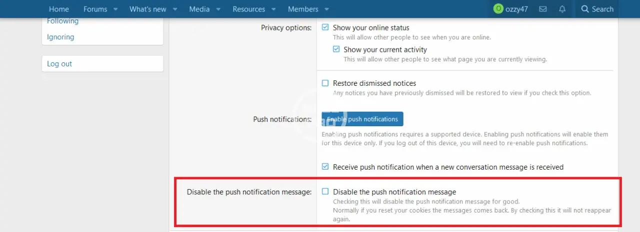 - allow your users with the proper permission to disable the annoying "push notification" message.