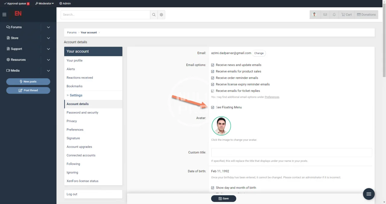 Customize any link/button based on user and page criteria, and also let users show/hide the menu from their account details page.
