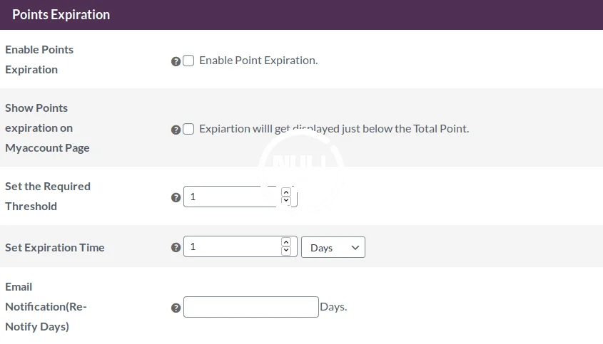He/she only needs to enable this feature from the Points Expiration setting of the plugin and add the required threshold for the points to expire. Along with this, the admin can also set the number of days he wants to notify his customers before the expiration. And edit the email message that will be delivered to the customers to notify them.