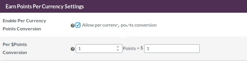 Customers can earn points for unique signups with this Points Management plugin. Merchants can enable the Sign-Up reward feature from the General Settings of the plugin and enter the number of points they want to offer on every unique sign-up.With the WooCommerce Points And Rewards plugin, your customers can earn points against each dollar they spend on your store. You need to enable this feature from the Per Currency Points setting of the plugin and set the conversion like how many points you want to offer on the set order value.