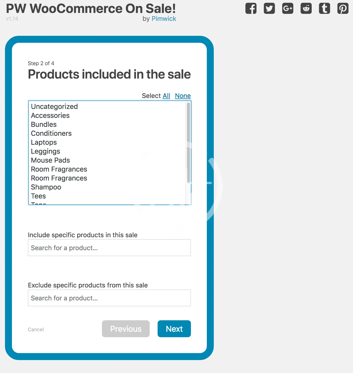 - Include or exclude specific products for the sale.