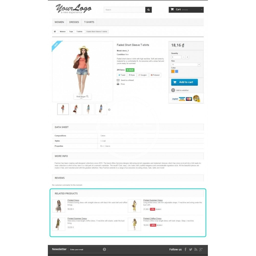 - Show related products: manual or auto (using tags)