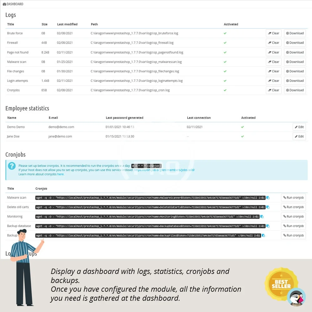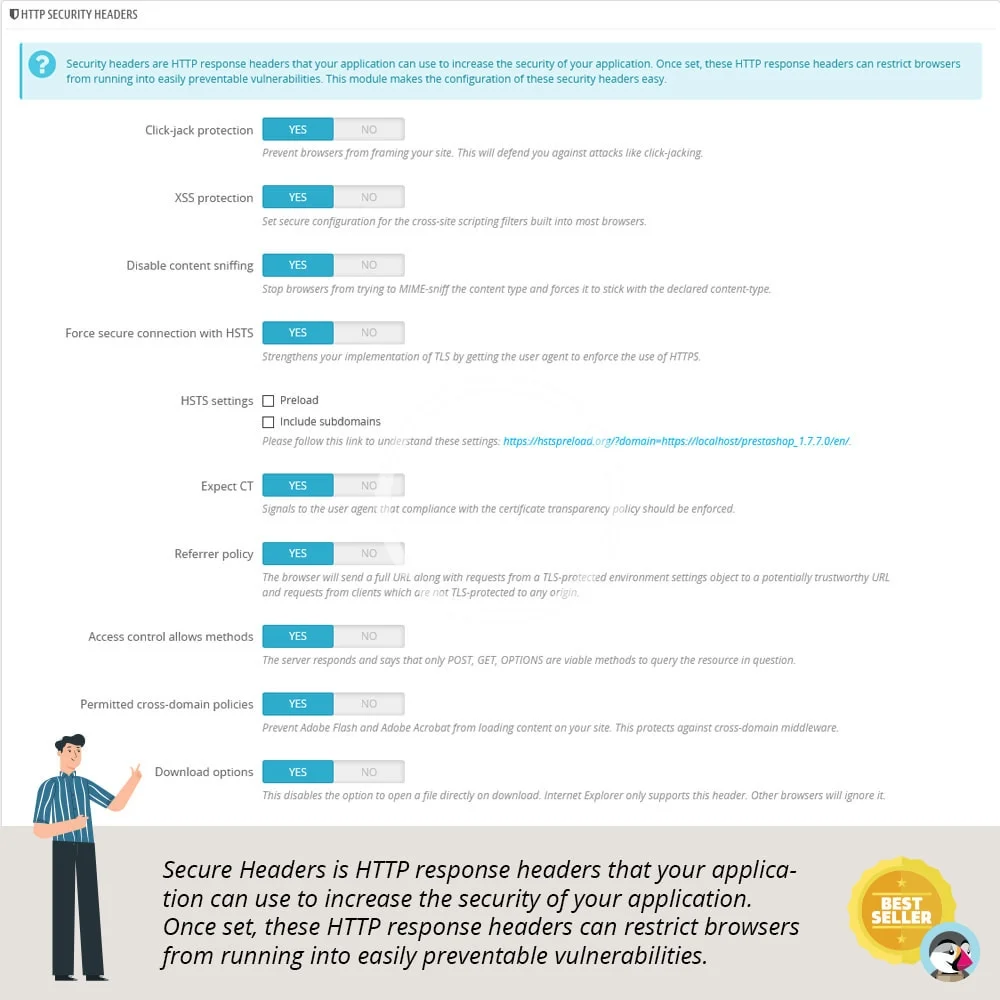 PrestaShop is very secure. It's among the most secure content management systems available. When that is said, it's good practice to add extra layers of security. I added all these layers as features to enable them without any coding knowledge to follow best practice. Trust me — this module will save you or your webmaster months of work.