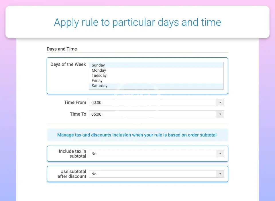 - Choose particular days of the week for the conditions to be applied;