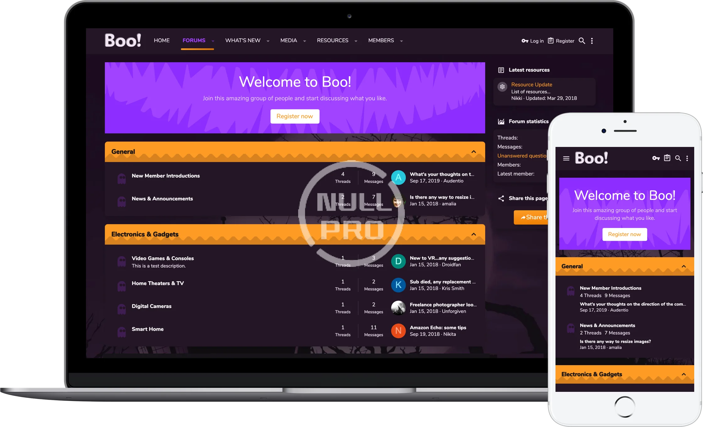 - Based on the popular iO Dark theme, Boo! Showcases a vibrant, clean look on your forum.