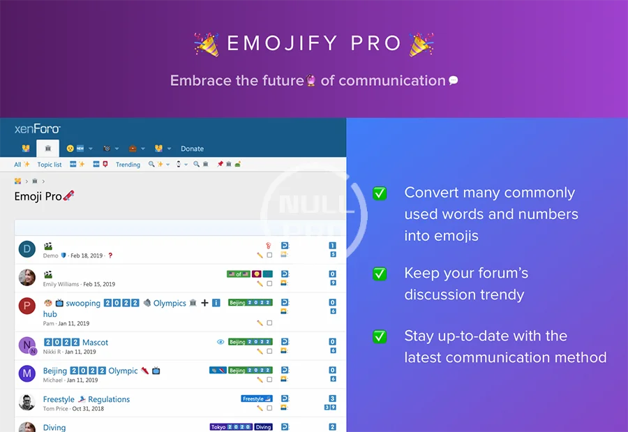 Emojify Pro allows your users to easily translate your forum using emojis and with expressive, emoji filled discussions. Spark new conversations and stay current with the internet’s fast changing exchanges.