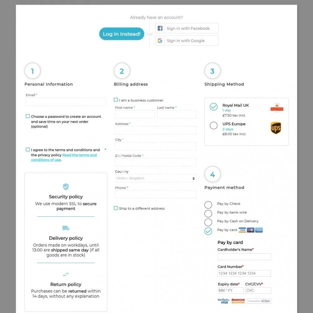 Professional looking and responsive checkout.