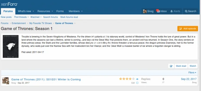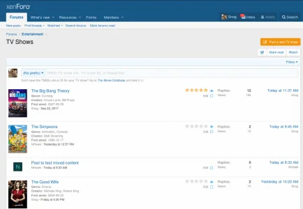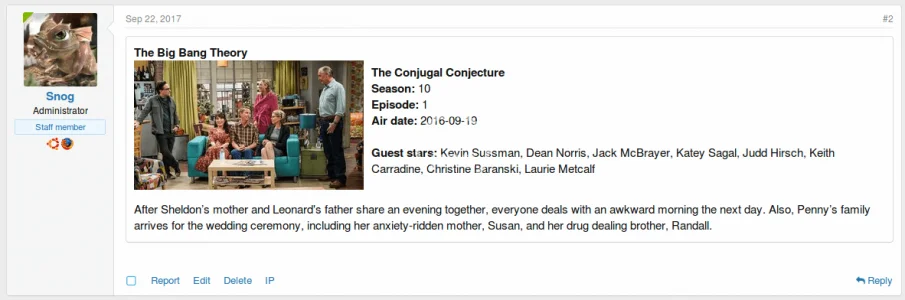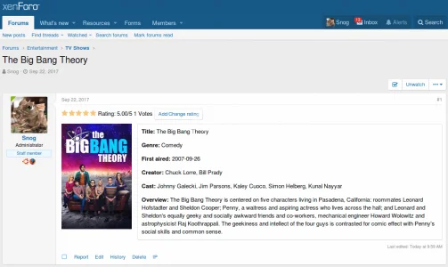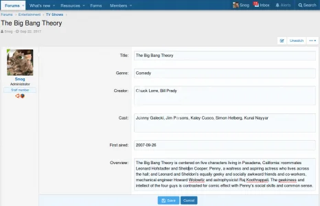 The TMDb TV Thread Starter allows you to enter the TV show ID or the entire link to the TV show at TMDb into your new thread, add whatever comments you like and post the new thread. The TMDb TV Thread Starter will import all of the information for your TV show into the first post of the new thread.