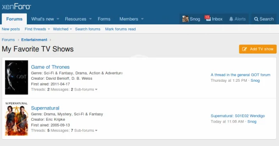 - TV show title is always used as thread title (unless new thread is a regular thread).