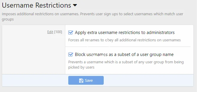- Prevents users from selecting a username which matches user groups.