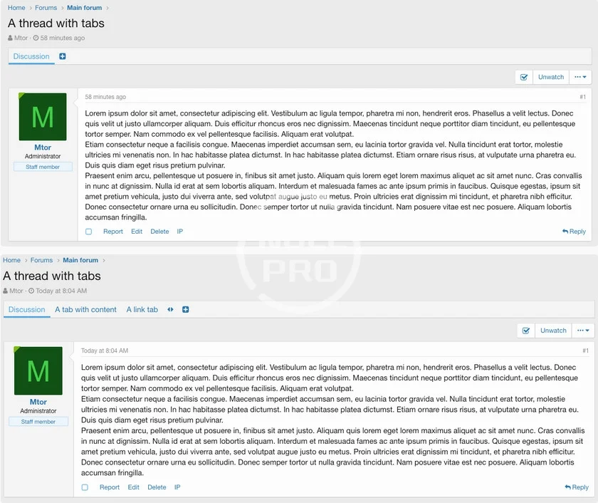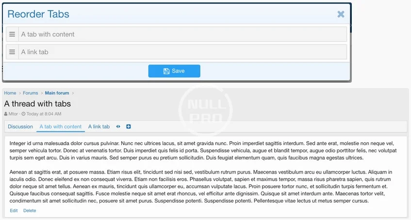 Very simple to use, it lets your user create as much tabs as they want through a few clicks within the thread. Tabs can either be pure text content input by the user or links.