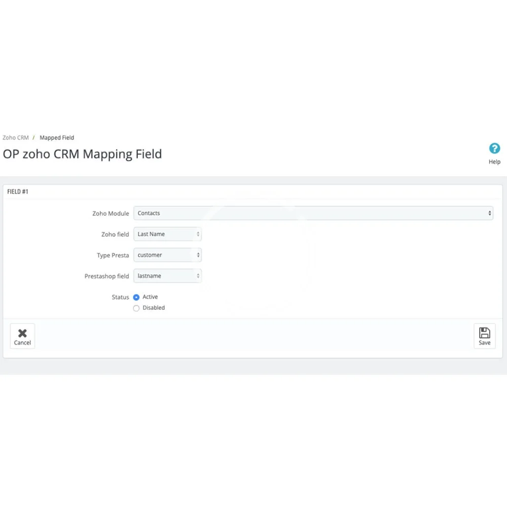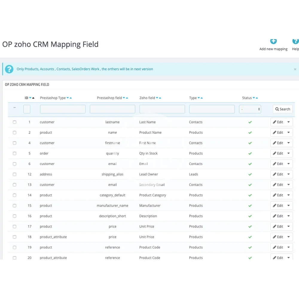 • mapping of field betewen zoho crm et prestashop