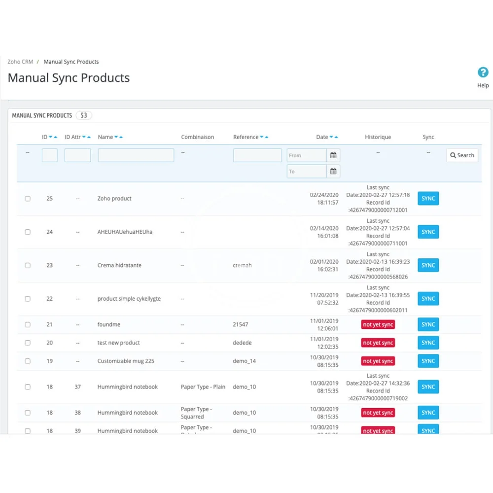 All these features are included in zoho and you will not have to implement them in your Prestashop e-shop.
